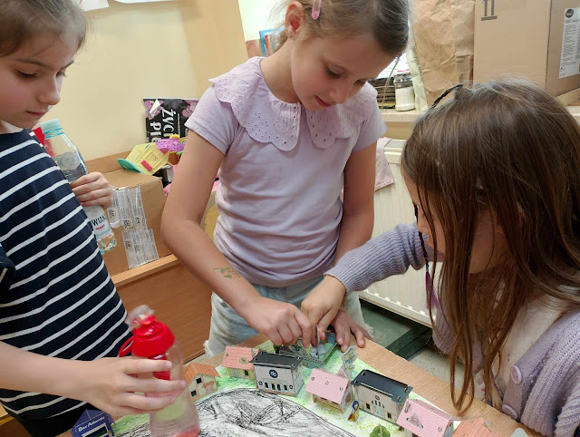 Pierwszaki miały niezłą zabawę przy projektowaniu i budowaniu własnego miasteczka.